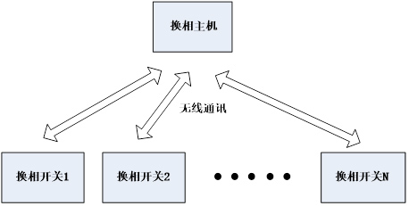 三相負(fù)荷不平衡自動(dòng)調(diào)節(jié)裝置系統(tǒng),由一臺(tái)主機(jī)及多臺(tái)分機(jī)(15~20臺(tái))組成,應(yīng)用于配電變壓器低壓側(cè)(220/380V),主機(jī)及數(shù)據(jù)采集裝置安裝于配電變壓器低壓側(cè),各分機(jī)分別安裝于終端用戶表前側(cè),通過無線通訊方式組成調(diào)控網(wǎng)絡(luò),系統(tǒng)主機(jī)采集配變各相負(fù)荷實(shí)時(shí)參數(shù),經(jīng)計(jì)算后以無線通訊方式控制各分機(jī),各分機(jī)采用專用換相開關(guān)組件,將所接入的用戶負(fù)荷實(shí)時(shí)切換到合適的相別上,使配變低壓側(cè)負(fù)荷基本保持在平衡狀態(tài),從而達(dá)到減少線路損耗、變壓器損耗和延長變壓器使用壽命,提高供電質(zhì)量的目的。
