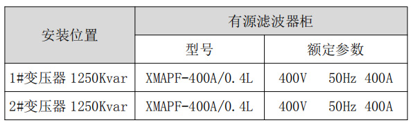 2.1 現(xiàn)場電能質(zhì)量選型和制訂首先,要保證功率因數(shù)要達(dá)到要求,諧波治理方案要能夠保障主要諧波吸收或抵消目的的實(shí)現(xiàn),要保障諧波治理設(shè)備投入使用后系統(tǒng)電路內(nèi)的諧波量對設(shè)備影響較?。黄浯?,系統(tǒng)改進(jìn)方案要保障裝置自身的安全性。變壓器穩(wěn)定電流多按照正常30%的設(shè)計(jì)要求使用有源濾波器可以治理設(shè)備的諧波.
