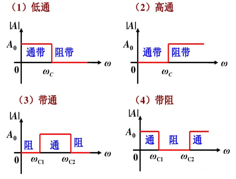 按通頻帶分類,有源濾波器可分為低通濾波器(LPF)、高通濾波器(HPF)、帶通濾波器(BPF)、帶阻濾波器(BEF)等,它們的聯(lián)系區(qū)別如圖所示: