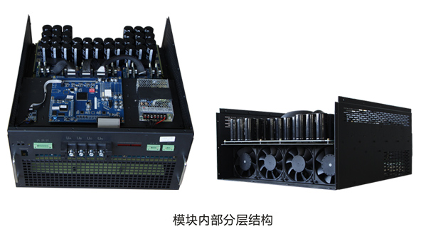 除風(fēng)扇外所有導(dǎo)電元件與外界隔離,適應(yīng)于粉塵、鹽堿、潮濕嚴(yán)重的惡劣場(chǎng)合。模塊內(nèi)部結(jié)構(gòu)示意圖如下: