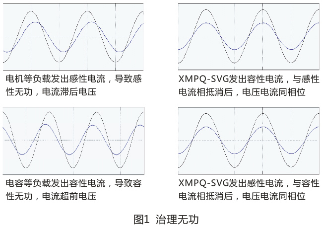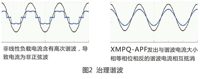 有源濾波器(APF)補償2-50次諧波,靜止無功發(fā)生器(SVG)補償無功、三相電流不平衡、以及13次以內(nèi)低次諧波。